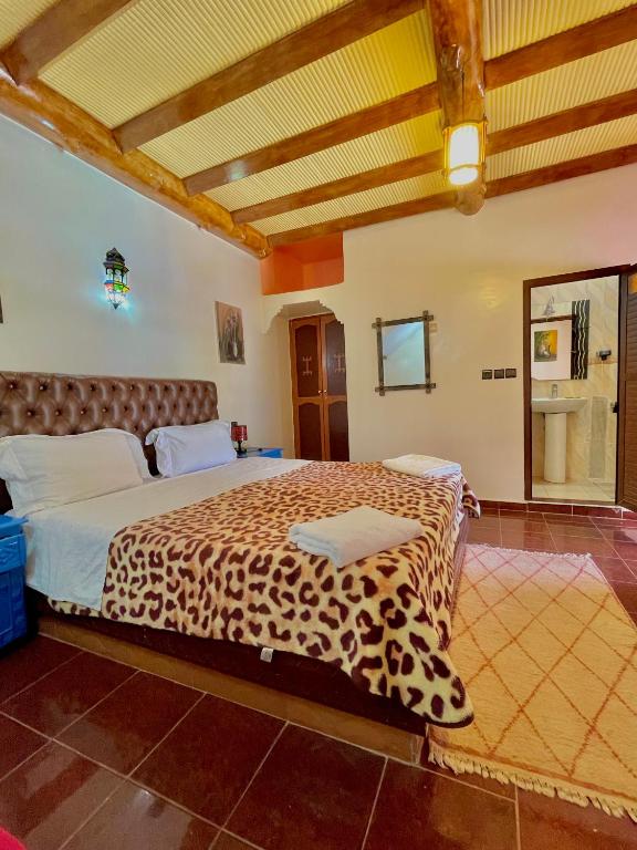 Un petit-déjeuner comprenant de l'amlou, un mets marocain composé de crêpes et d'huile d'argan, est servi tous les matins. Le restaurant de l'hôtel propose une cuisine berbère traditionnelle.